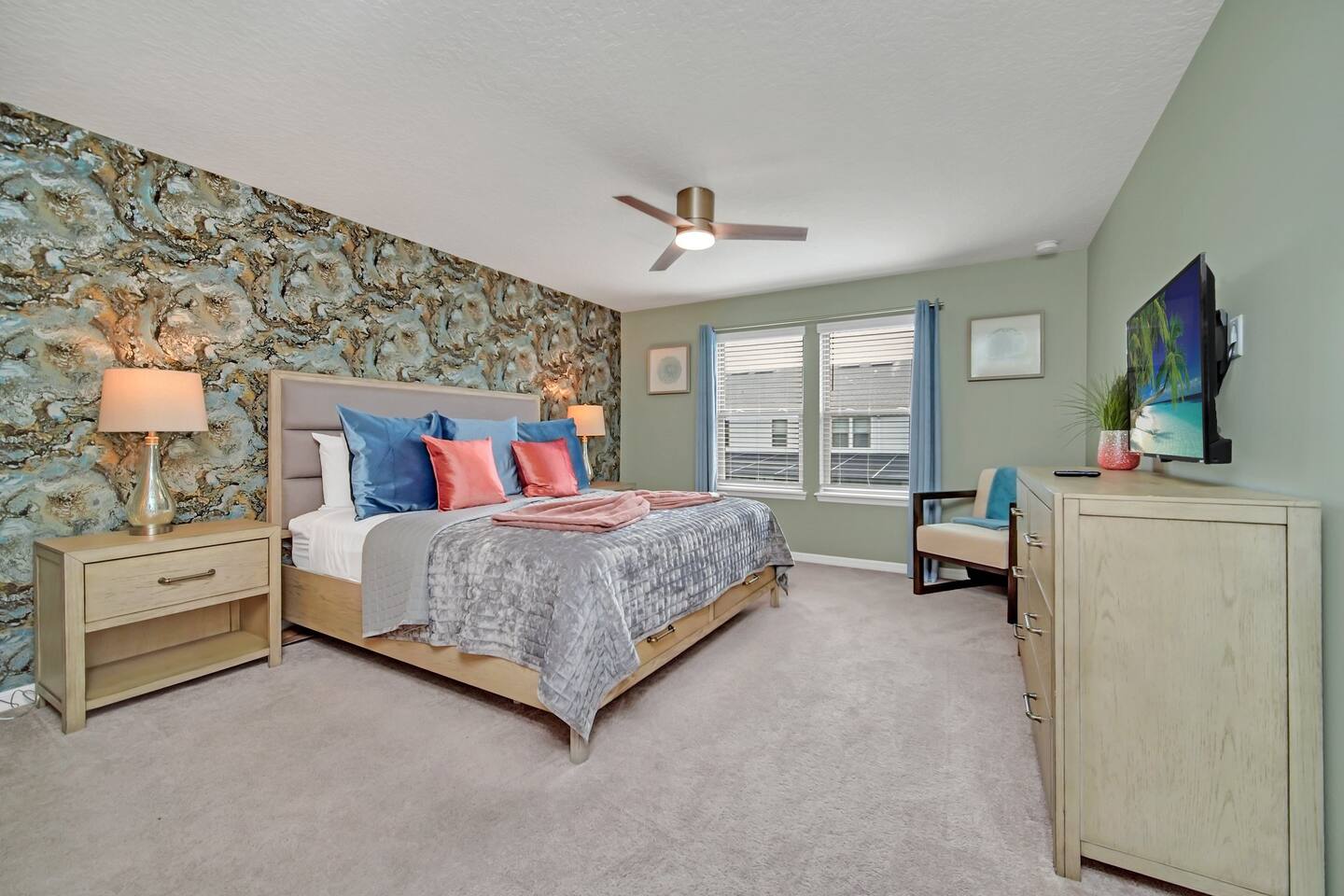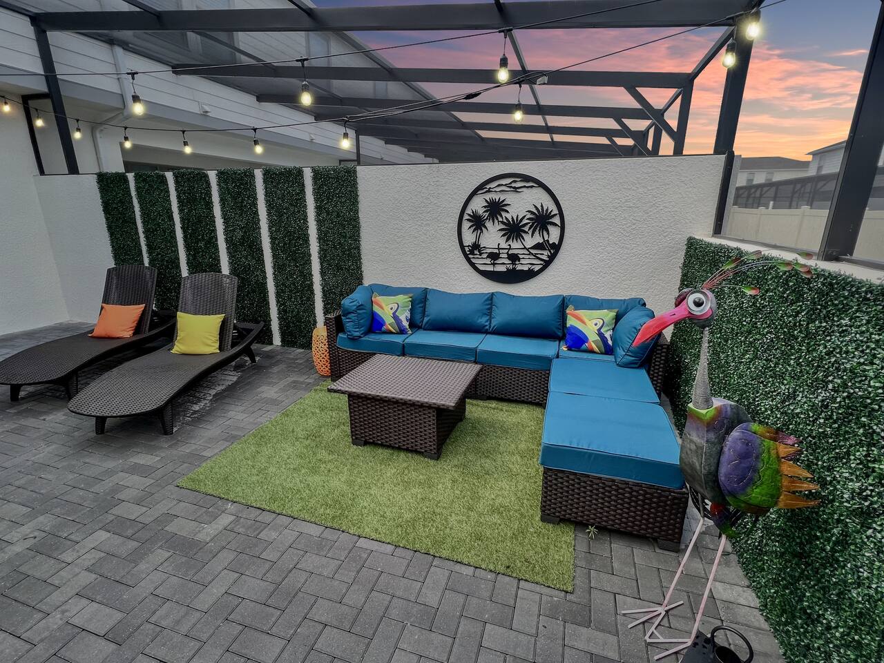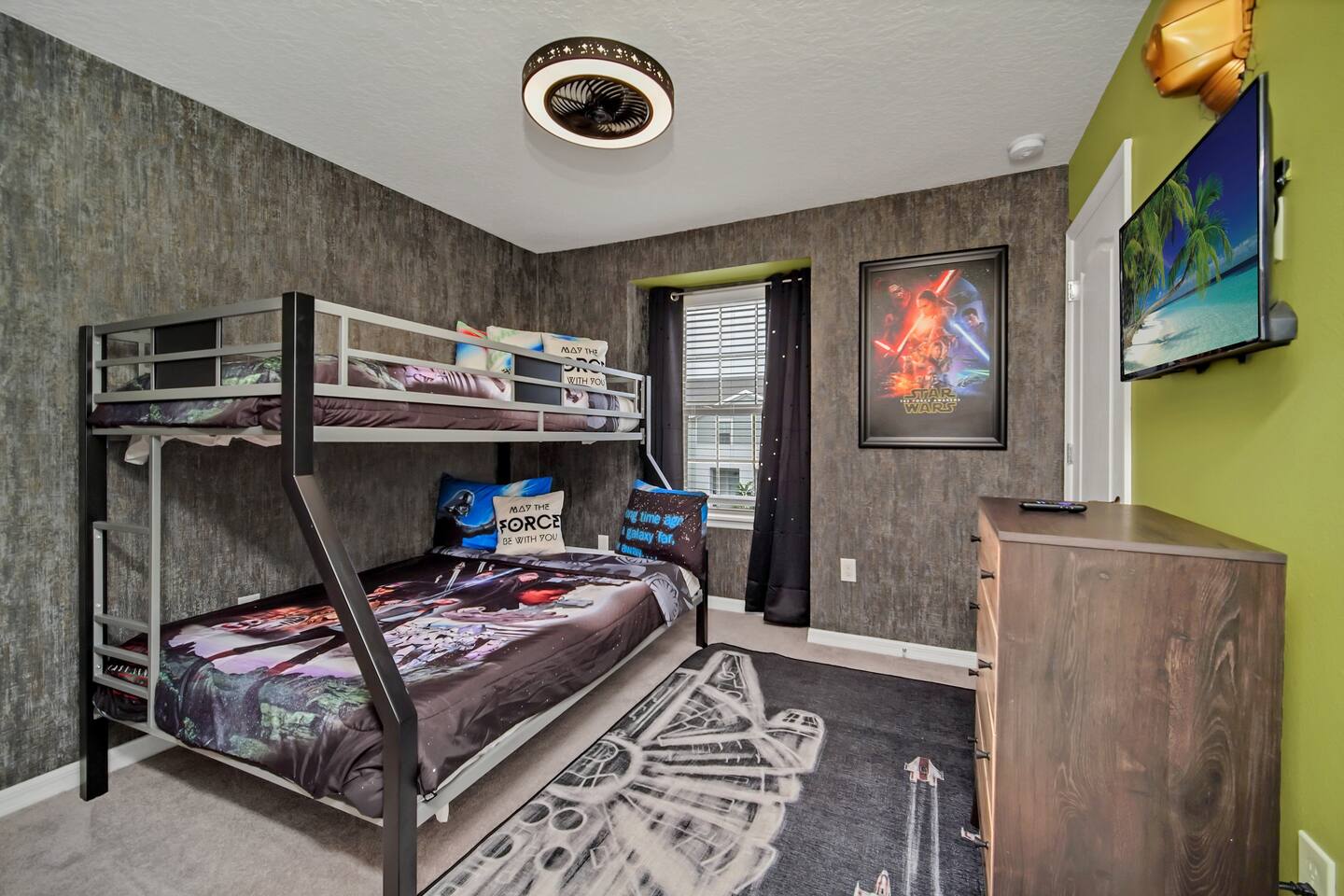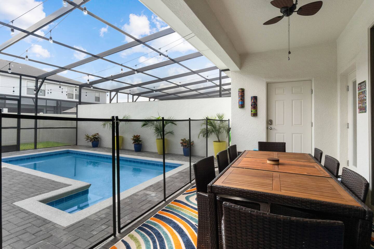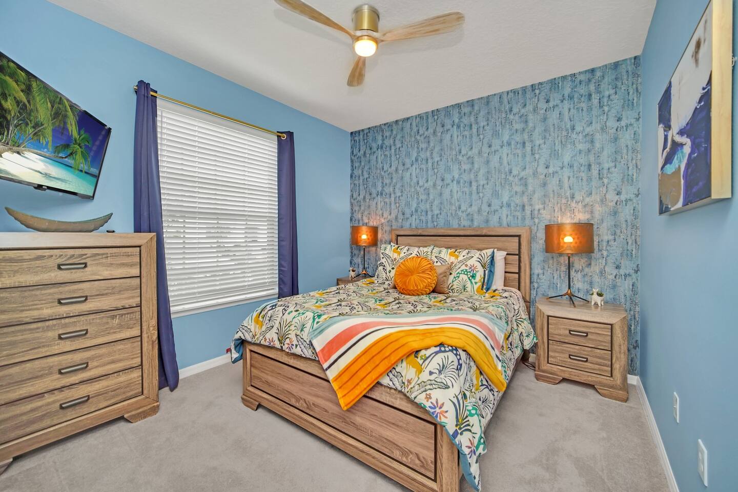 Prime Location – Just minutes from Disney, and Margaritaville! - Private Heated Pool (pool heat at additional cost)– Enjoy your own 4ft deep pool or float in the lazy river at the resort - Family-Friendly & Spacious – 5 bedrooms, 4.5 bathrooms, plus a loft for movie nights - Resort-Style Living – Access to a water complex, tiki bar, sports courts, and more! - Fully-Equipped Kitchen & Home Comforts – Cook meals, do laundry, and feel at home. Welcome to Ohana Lemonade, a beautifully designed vacation retreat in the exclusive Windsor at Westside Resort. This home offers everything you need for a magical stay, including five stylish bedrooms, a fully equipped kitchen, and a cozy loft perfect for movie nights. The spacious open-concept living and dining area features plush seating, a large Smart TV, and modern decor, creating a welcoming space to unwind. Whether you're enjoying a family dinner at the dining table or lounging on the sectional after a day at the parks, this space is designed for relaxation. The gourmet kitchen is fully stocked with top-of-the-line appliances, including a refrigerator with an ice maker, a coffee maker, a blender, and all the cookware you need. Whether you're whipping up a quick breakfast before heading out or preparing a family feast, you’ll have everything at your fingertips. Each bedroom is designed for maximum comfort. The primary suite boasts a king-sized bed, a private en-suite bathroom, and a Smart TV, making it the perfect retreat. Additional bedrooms feature queen beds, themed bunk beds for the kids, and cozy decor that adds to the home’s charm. Every room has a Smart TV, remote-controlled ceiling fan, and plush bedding to ensure a restful night’s sleep. For even more entertainment, the upstairs family loft is the perfect place to gather. Equipped with a Smart TV and comfortable seating, it’s an ideal spot for movie nights, board games, or simply unwinding after a long day. Step outside to your private splash pool, where you can soak up the Florida sun, enjoy an al fresco meal, or unwind in the lounge area. The patio features a dining table, lounge chairs, ambient string lighting, and a cabana bath for added convenience. Whether you're cooling off in the water or simply enjoying the warm Florida evenings, this outdoor space is designed for fun and relaxation. Want even more fun? The resort’s lazy river, huge pool, fitness center, and tiki bar are just minutes away! Where you will sleep: Bedroom 1: King bed with attached full bathroom Bedroom 2: Queen bed with attached full bathroom Bedroom 3: Twin over twin bunk bed Bedroom 4: Twin over full bunk bed Bedroom 5: Queen Bed (downstairs) For traveling families: -Baby gate for stairs -Pack and Play -Kids plates and utensils -Booster Seats -High Chair -------------------------------------------------------------------------------------------------------------------------------------------------------------------------------------- To keep everything above board and ensure a safe and secure stay for everyone, we've got a few quick steps for you to breeze through: - Verify Yourself: You might be asked to show us your official ID – don’t worry, it’s just to make sure you’re you! - Must be 25 years or older to rent our home! - Confirm Contact Info: Double-checking your digits so we can reach you easily if needed. - Security Screening: Hop through our verification portal – think of it as your VIP pass to a fantastic stay. Rest assured, your info is as safe as houses with us! We won’t be selling, sharing, or handing it off to anyone else. Once you’re all set and verified, we’ll shoot over your check-in instructions faster than you can say “vacation time!” So let’s get this party started – your dream getaway awaits!